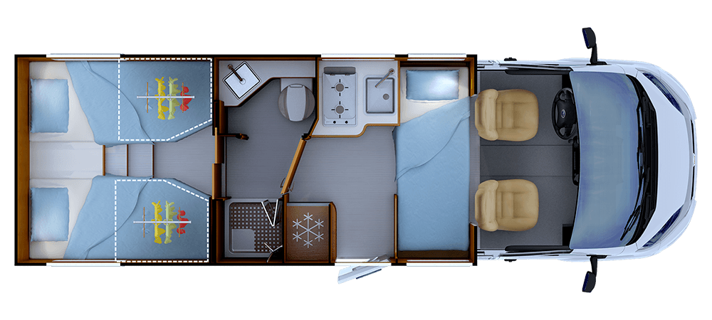 Der einzige kompakte Teilintegrierte mit Einzelbetten, Face-to-Face Sitzgruppe und separater Dusche