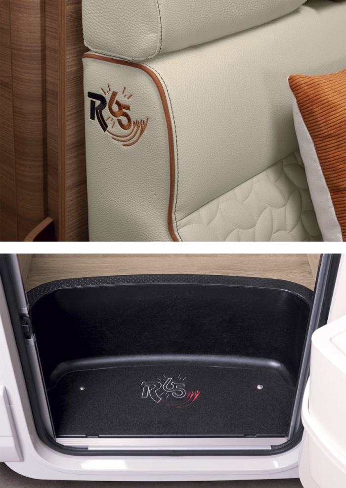 Ein weiteres Highlight ist das delikate gestickte Logo «65 Jahre», das die Fußmatte an der Wohnraumtür der Modelle 666F und 696F schmückt.