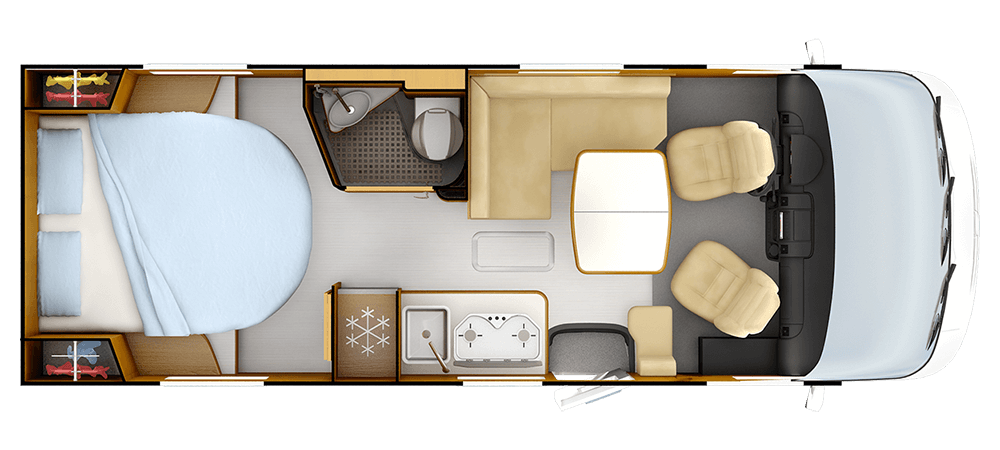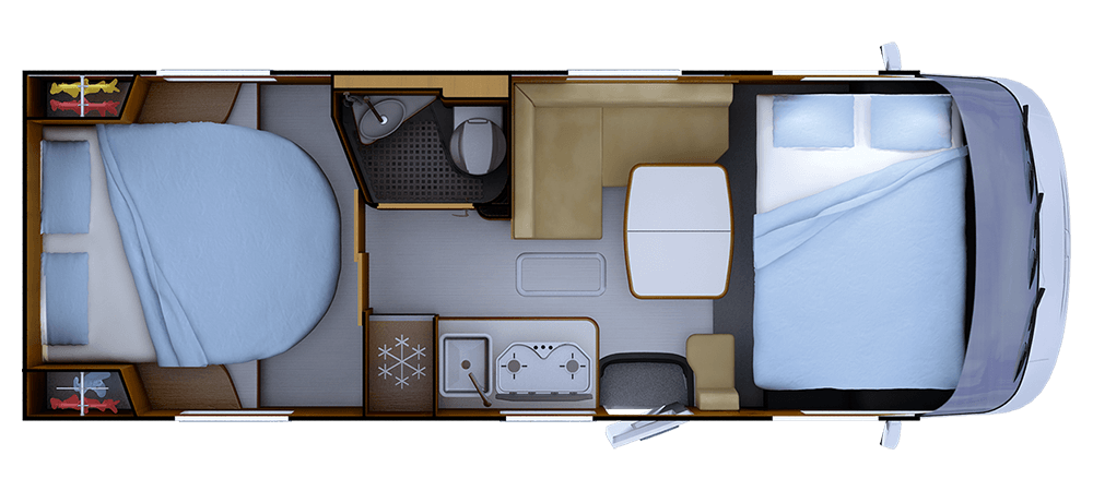 Sitzgruppenzusatzbett 2 Plätze 90 x 175 cm und Fahrerhaushubbett 145 x 190 cm