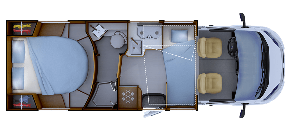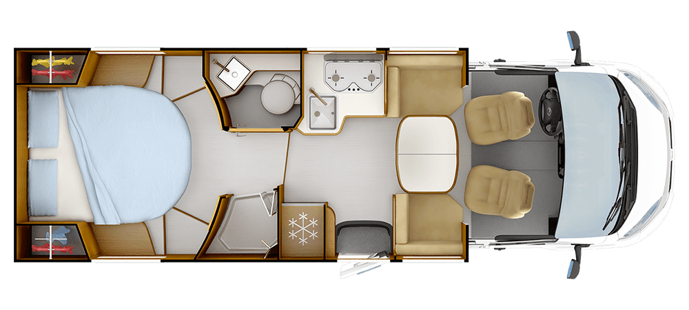 Zusätzliche Stauräume unter den Sitzbänken im Wohnraum